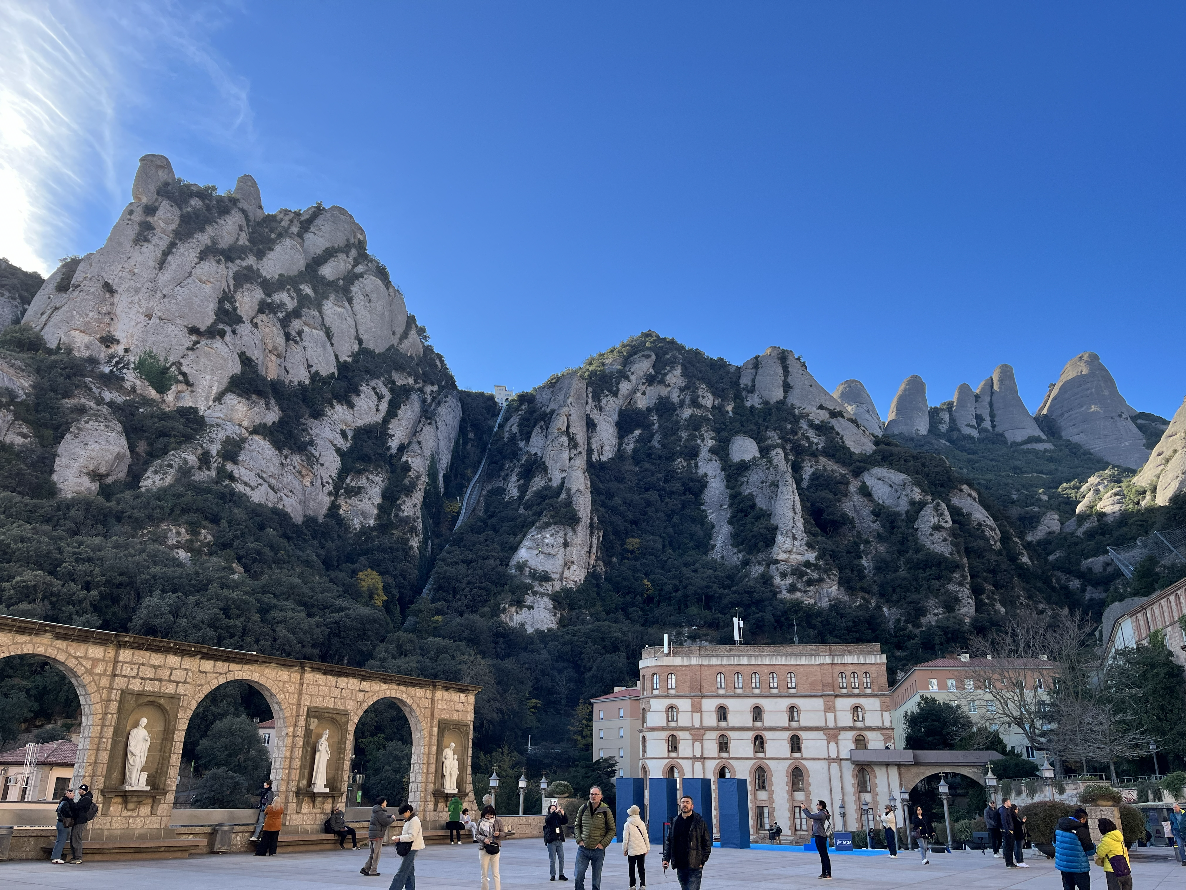 モンセラットに到着後、ケーブルカーで中腹エリアに上がり、ガイドとともに聖堂周辺を散策した後、自由行動が開始されます。
