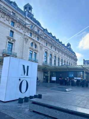 オルセー美術館 入り口前にある、M'Oの白い看板