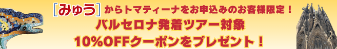 [みゅう]トマティーナツアーをお申込みいただいたお客様限定!バルセロナ発着ツアーが10%OFFとなるクーポンコードをプレゼントいたします。