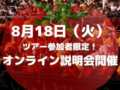 オンライン説明会ではバルセロナ在住のトマト祭りに参加したことのあるスタッフが、トマト祭りを楽しむ方法をご案内いたします!