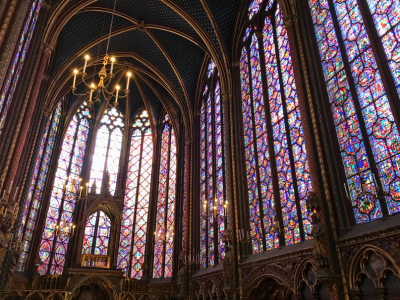 サント・シャペル教会はパリに来たらぜひ訪れてほしい場所のひとつ。美しいステンドグラスが必見の教会でパリ市内のモニュメントのなかでも特に人気のあるスポットです。高さ15mの15枚のステンドグラスでは、旧約聖書、新約聖書の中に描かれている1113枚ものシーンをステンドグラスで表現されています。